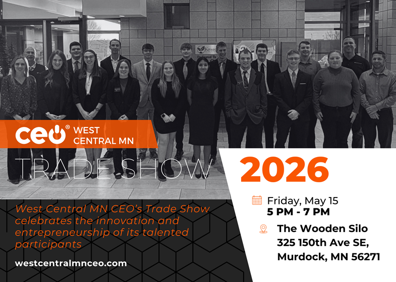 West Central MN CEO Class of 2026 is comprised of 15 students. Students are selected from 4 different surrounding schools.